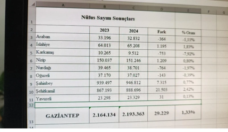 Gaziantep’in genel nüfus artışı %1,33 olarak kaydedilirken, önümüzdeki dönemde demografik hareketlilikle ilgili daha ayrıntılı analizler bekleniyor.