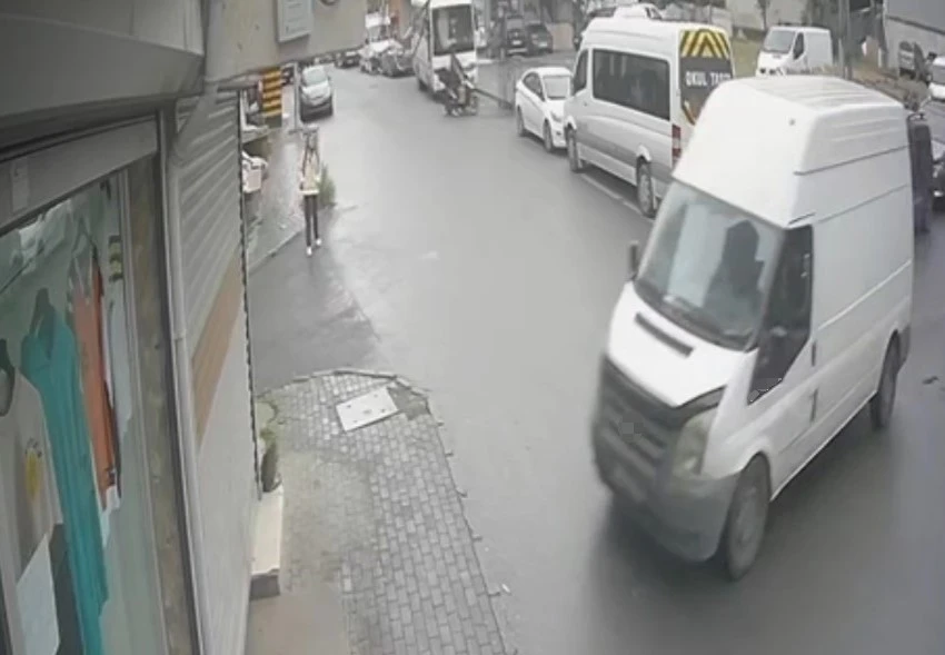 Yaşanan o anlar güvenlik kamerası tarafından saniye saniye görüntülendi. Görüntülerde, freni boşalan panelvan minibüsün süratle bir dükkana çarptığı anlar yer alırken, kaldırımda genç kızın yürüdüğü ve kazadan saniyelerle kurtulduğu görülüyor.