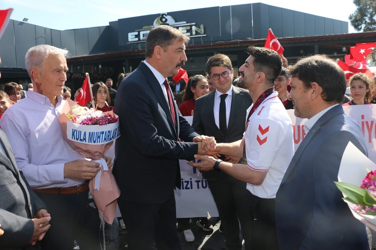 Şampiyon güreşçi Kerem Kamal, beden eğitimi öğretmenliği görevini de sürdürdüğü Kula’da, sevenleri tarafından adeta bir kahraman gibi karşılandı. İlk olarak Egemen Dinlenme Tesisleri’nde yoğun bir kalabalık tarafından alkışlar ve tezahüratlarla karşılanan Kamal’a, Kula Yaren Ekibi eşlik etti. Kamal, Yaren ekibi eşliğinde şehir turu atarak hemşehrilerini selamladı. Şehir turunun ardından Kerem Kamal, görev yaptığı Fatih Ortaokulu’na geçti. Burada öğretmen arkadaşları ve öğrenciler tarafından büyük bir sevgi seliyle karşılanan Kamal’a, okul müdürü Güngör Zobudoğuş tarafından çiçek takdim edildi. Törende duygu dolu anlar yaşanırken, Kamal’ın başarısı öğrencilere ilham kaynağı oldu. Kerem Kamal: "Mutluluğumla mutlu olan herkese çok teşekkür ediyorum"