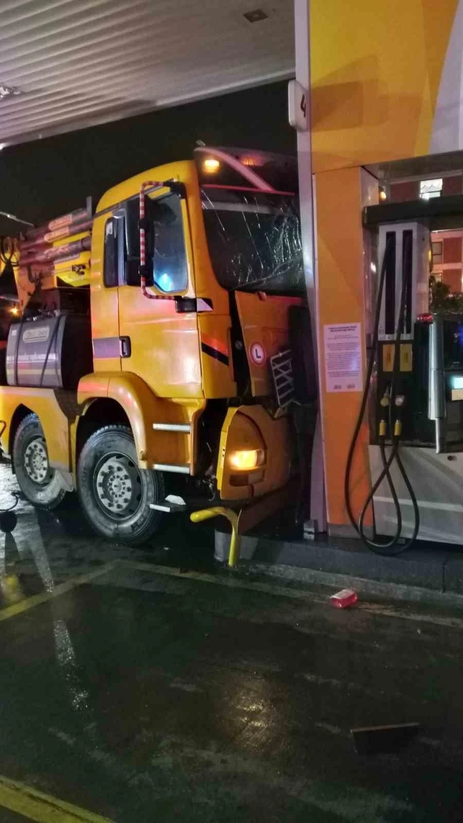 Aydın’da vinç akaryakıt istasyonuna daldı