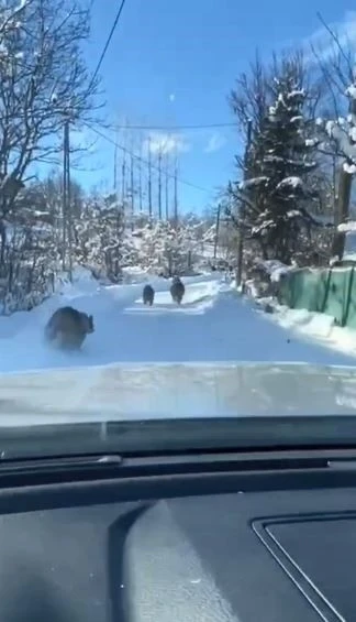 Görüntülerde ayı ve yavrularının koşarak araç önünde ilerlediği görülürken, bölgede son dönemlerde ayı hareketliliğinin arttığı sözlendi. Özellikle kış aylarında ayı videoları bölgeden sıkça görülmeye başlandı.