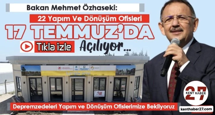 Yapım ve Dönüşüm Ofisleri, depremden etkilenen illerde 17 Temmuz’dan itibaren 22 bölgede hizmet verecek.