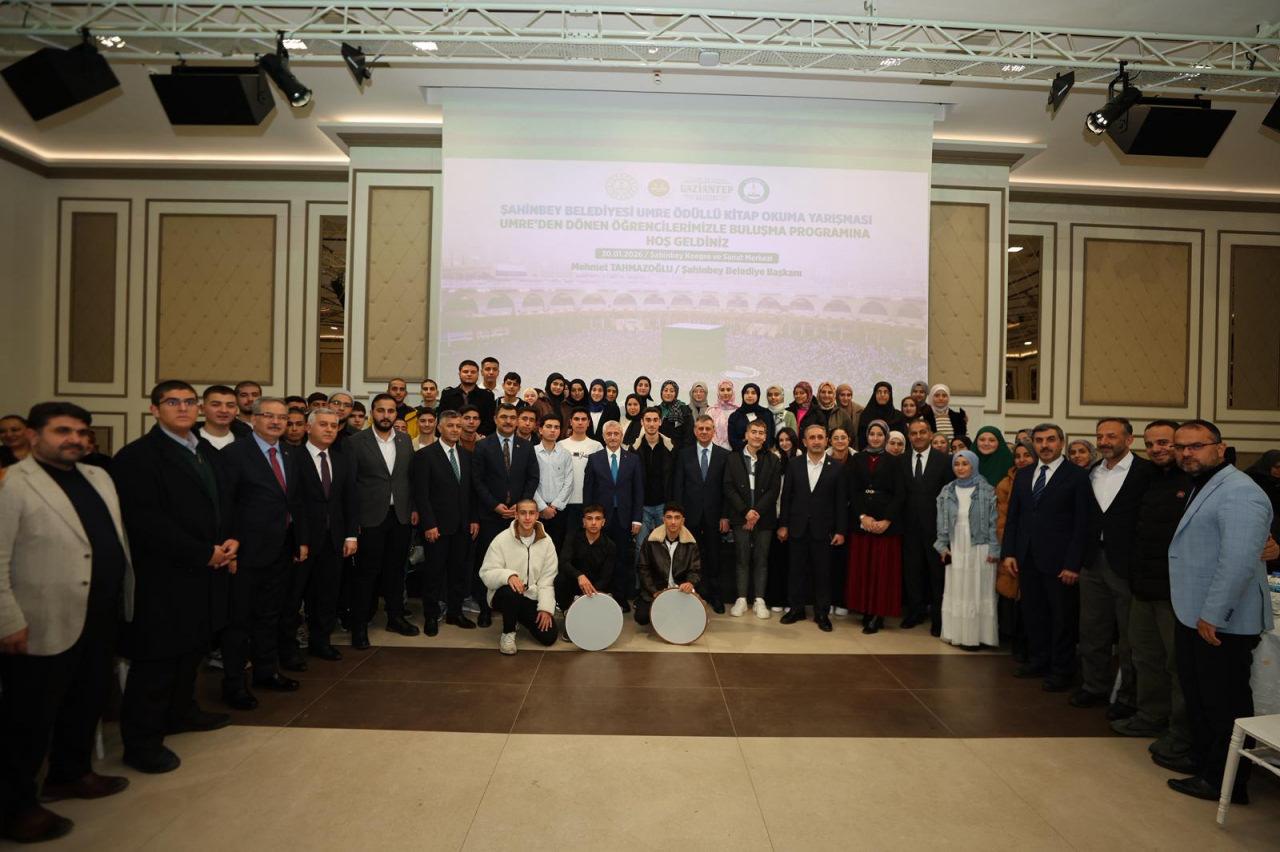 Şahinbey Belediyesi koordinasyonunda, Gaziantep Valiliği, İl Milli Eğitim Müdürlüğü ve Gaziantep İl Müftülüğü ’nün birlikte organize ettiği Umre ödüllü “Peygamber Efendimizin Hayatı” kitabından yapılan sınavda okullarında 1’nci, 2’nci ve 3’üncü olup Umre ziyareti için kutsal topraklara gidip dönen öğrenciler ve aileleri Şahinbey Kongre ve Sanat Merkezi’nde Gaziantep protokolü ile bir araya gelerek sohbet ettiler. Şahinbey Belediye Başkanı Mehmet Tahmazoğlu’nun ev sahipliğinde düzenlenen programa AK Parti Gaziantep Milletvekilleri İrfan Çelikaslan, Şehzade Demir, Bölge İdare Mahkemesi Başkanı Mehmet Metin Kahraman, İl Milli Eğitim Müdürü Dr. Önder Arpacı, İl Müftüsü Şakir Aktaş ve protokol üyeleri katıldı. Şahinbey Belediyesi’nin 2017 yılında başlattığı proje kapsamında bugüne kadar 1.286 öğrenci umre heyecanı yaşarken yapılan tüm harcamaları Şahinbey Belediyesi tarafından karşılandı.