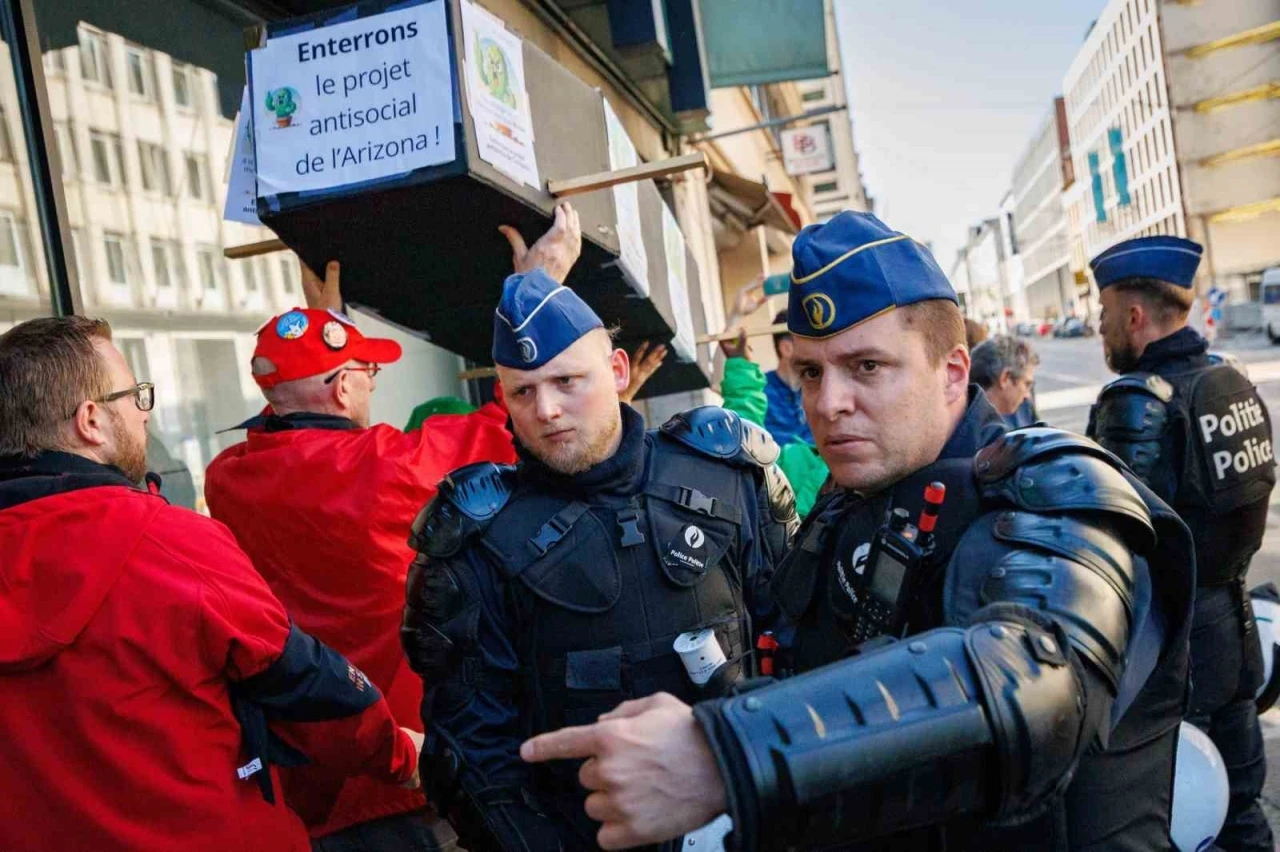 Polis verilerine göre Brüksel’de 4 bin kişi gösteri düzenledi. Göstericiler Başbakan Bart De Wever’in sağxı Yeni Flaman İttifakı Partisi’nin (N-VA) genel merkezine temsili siyah tabut bıraktı.