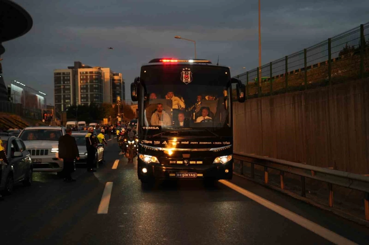 Trendyol Süper Lig’in 8. haftasında Beşiktaş, bugün saat 20.00’de Galatasaray’a konuk olacak. Derbi hazırlıklarını tamamlayan siyah-beyazlılar, kamp yaptığı Ümraniye Nevzat Demir Tesisleri’nden hareket ederek mücadelenin oynanacağı RAMS Park’a ulaştı. Beşiktaşlı kafile, yoğun güvenlik önlemleri altında stada giriş yaptı.