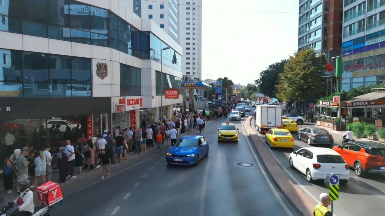 Beşiktaş Fulya’da bir zincir marketin açılışında hediye çeki verileceğini duyanlar 8 saat kuyrukta bekledi. Marketin önünde kilo metrelerce uzunluğunda oluşan kuyruk havadan görüntülendi.