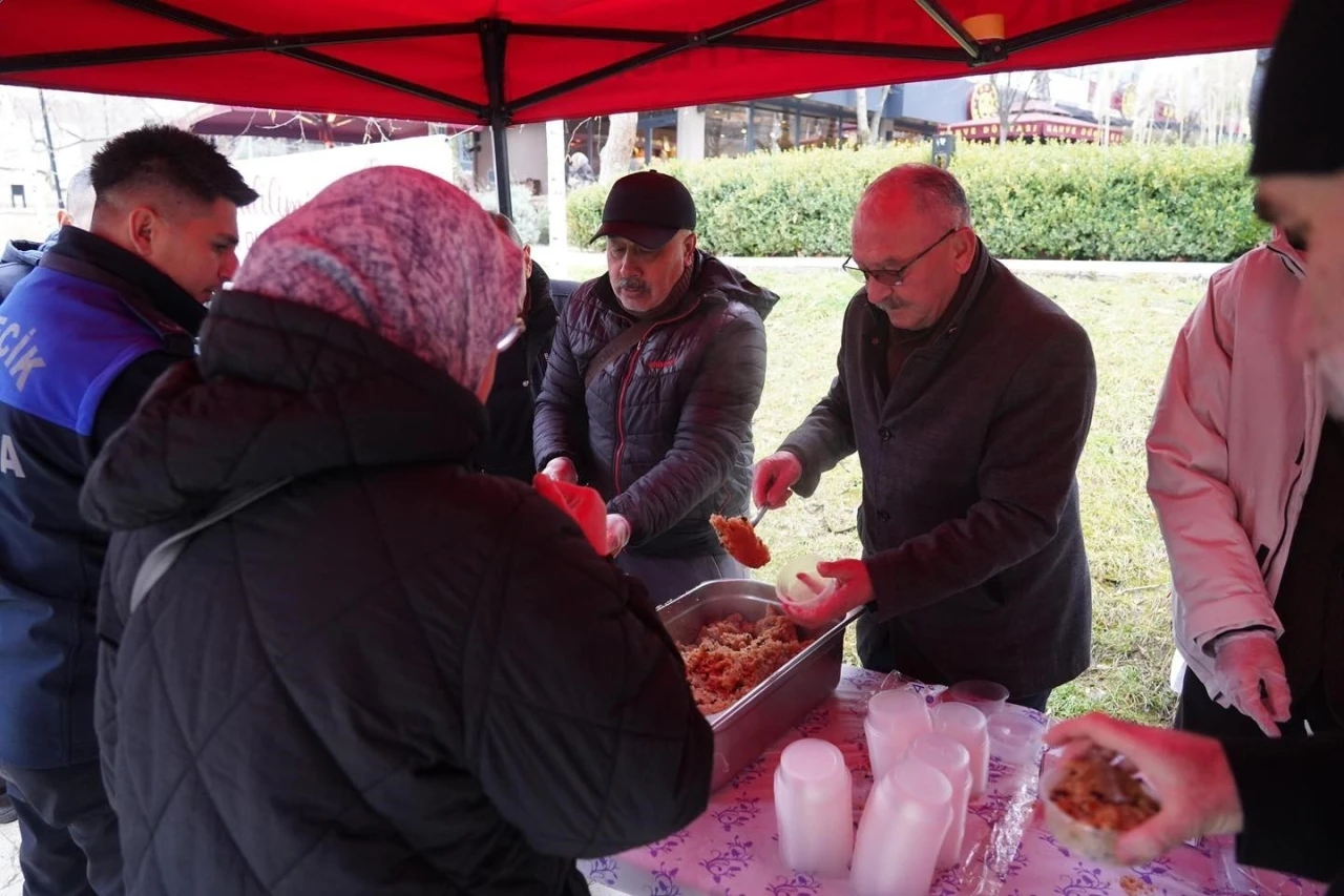 Bilecik Belediyesi tarafından Miraç Kandili dolayısıyla şehir merkezinde vatandaşlara helva ikramı yapıldı.