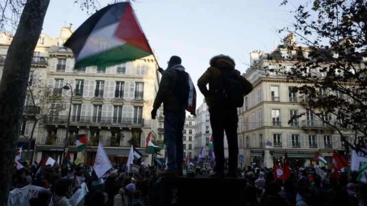 Paris'te Cumhuriyet Meydanı'nda "Bu bir soykırım, savaş değil", "Gazze'nin çocukları Filistin'in çocukları, insanlık öldürülüyor" ve "Yaşasın Filistin" sloganları eşliğinde başlayan gösteri, Bastille Meydanı'nda son buldu.
