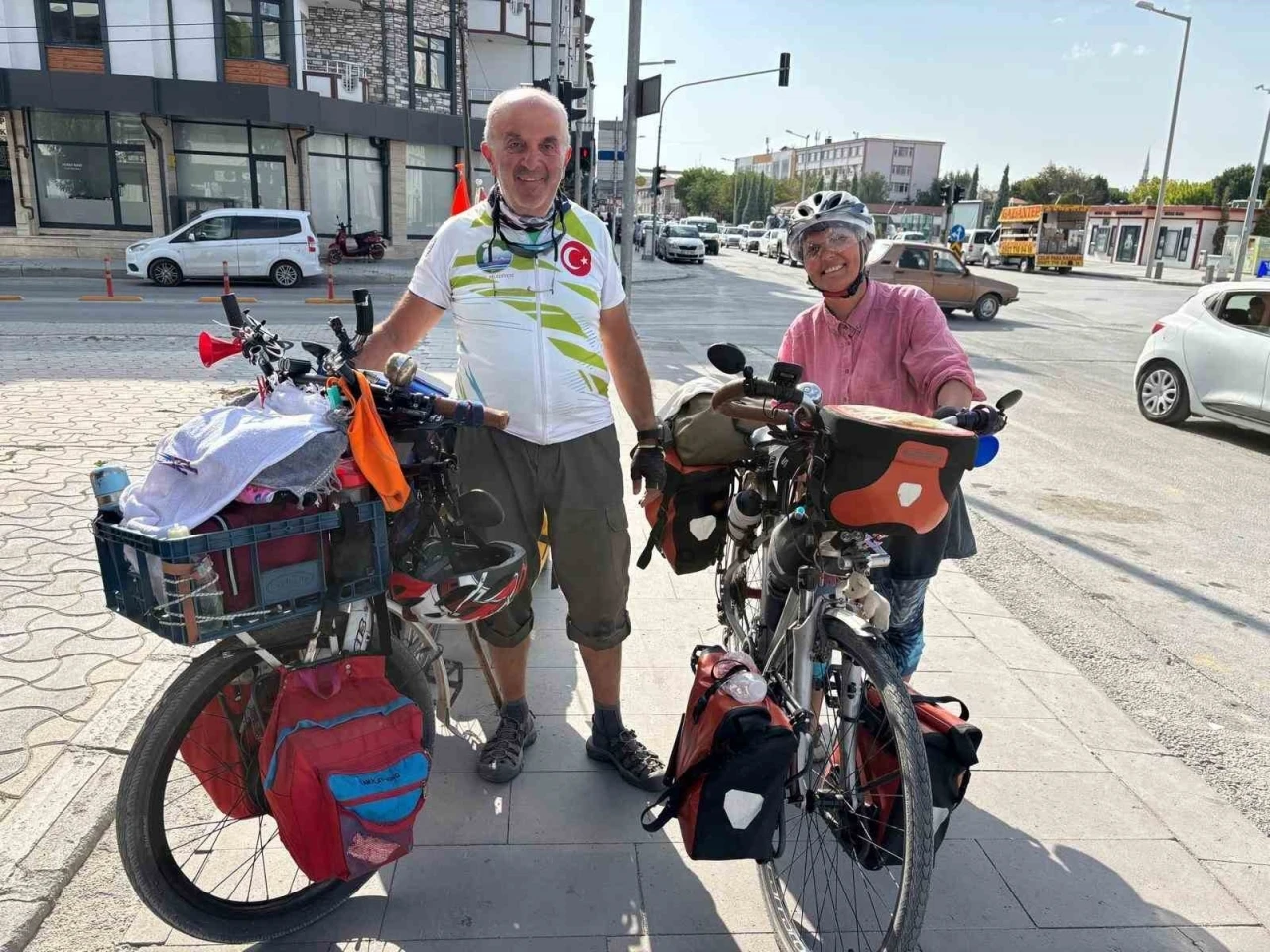 İstanbul’da yaşayan emekli çift, bisikletle çıktıkları Türkiye turunda Konya’nın Karapınar ilçesine ulaştı. 5 yıldır bölüm bölüm pedal çevirerek Türkiye’yi dolaşan emekli çift, bu yolculukla hem ülkeyi tanımayı hem de bisiklet kullanımına farkındalık kazandırmayı amaçlıyor.