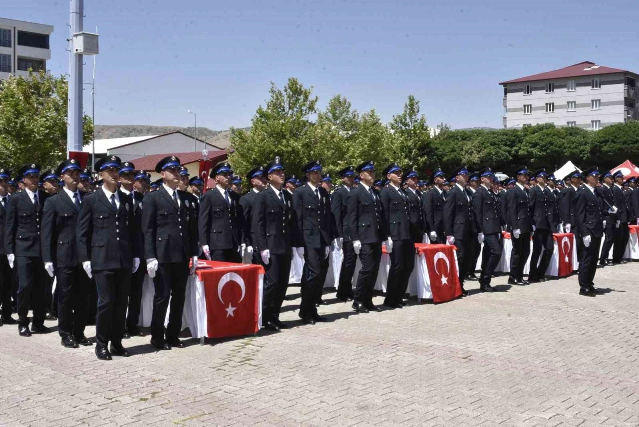 POMEM tören alanında düzenlenen mezuniyet programı, saygı duruşu ve İstiklal Marşı’nın okunmasıyla başladı. 31. dönem birincisi teşekkür konuşması yapması ve ardından yaş kütüğüne plaket çakması ile devam eden törende konuşan Bitlis Valisi Ahmet Karakaya, "Bugün sadece birer diploma almıyorsunuz. Aynı zamanda omuzlarınıza büyük bir sorumluluk da yüklüyorsunuz. Göreviniz yalnızca kanunları uygulamak değil, adaleti temsil etmek milletimizin emniyetini sağlarken devletin şefkatli yüzünü de göstermektir. Unutmayınız ki sizler bu milletin güven kaynağısınız. Gözleri yaşlı bir annenin, okula tek başına giden bir çocuğun, geç saatlerde evine dönen bir çalışanın güvendiği eli ve inandığı vicdanı temsil ediyorsunuz. Bu kutsal görevi yerine getirirken cesaretiniz kadar sabrınız, disipliniz kadar da merhametiniz rehberiniz olmalıdır" diye konuştu.