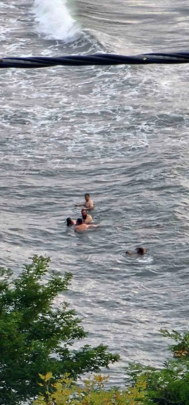 Zonguldak’ın Alaplı ilçesi Cennet Koyu sahilinde denizde boğulma tehlikesi geçiren 3 kadın, can simidi ve oluşturulan insan zinciriyle kurtarıldı. O anlar cep telefonuyla kaydedildi.