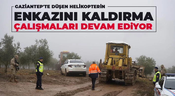 Hatay Havalimanı’ndan havalandıktan sonra Gaziantep’in Nurdağı ilçesi kırsalında kaza kırıma uğrayan polis helikopterinin enkazını kaldırma çalışmaları devam ediyor.
