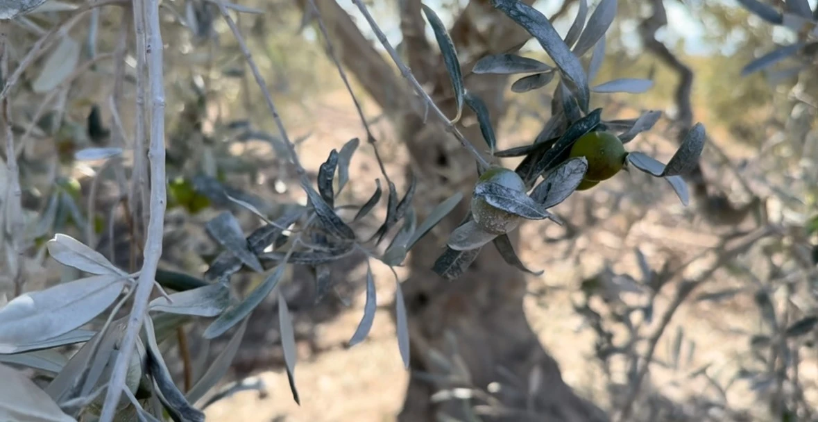 "Taş ocağı sorununu yıllardır yaşamaktayım. Bütün yetkililere başvurmama rağmen hiçbir sonuç alamadım. Şu anda mahkemelik olduk, mahkeme devam ediyor ama hiçbir netice yok. Her şeye itiraz ediyorlar. Tarlanın alt kısmına kavun ektim, kavunu yarı parasına sattım. Ziraatçi zarar kesti, ona da itiraz edildi. Ben arazimde toz istemiyorum. Yıllardır bu sıkıntıyı çekiyorum. Gitmediğim ve başvurmadığım bir yer kalmadı. Bana bu sorunu yaşatan Bursa Beton Taş Ocağı firması. Bu ürünleri, zeytinlerimi yıllardır bu şekilde ben toplayıp değerlendiremiyorum. Zeytinin üzerindeki toz bu şekilde. Bakın, elimle yapmama rağmen yağmurla dahi çıkmıyor. Bu şekilde devam ediyor. Ben bunu nasıl sileyim tek tek? Ben, yeri geldi kavunları bu şekilde tek tek sildim." "Kavun ve zeytinden gerektiği kadar mahsul alamıyoruz"