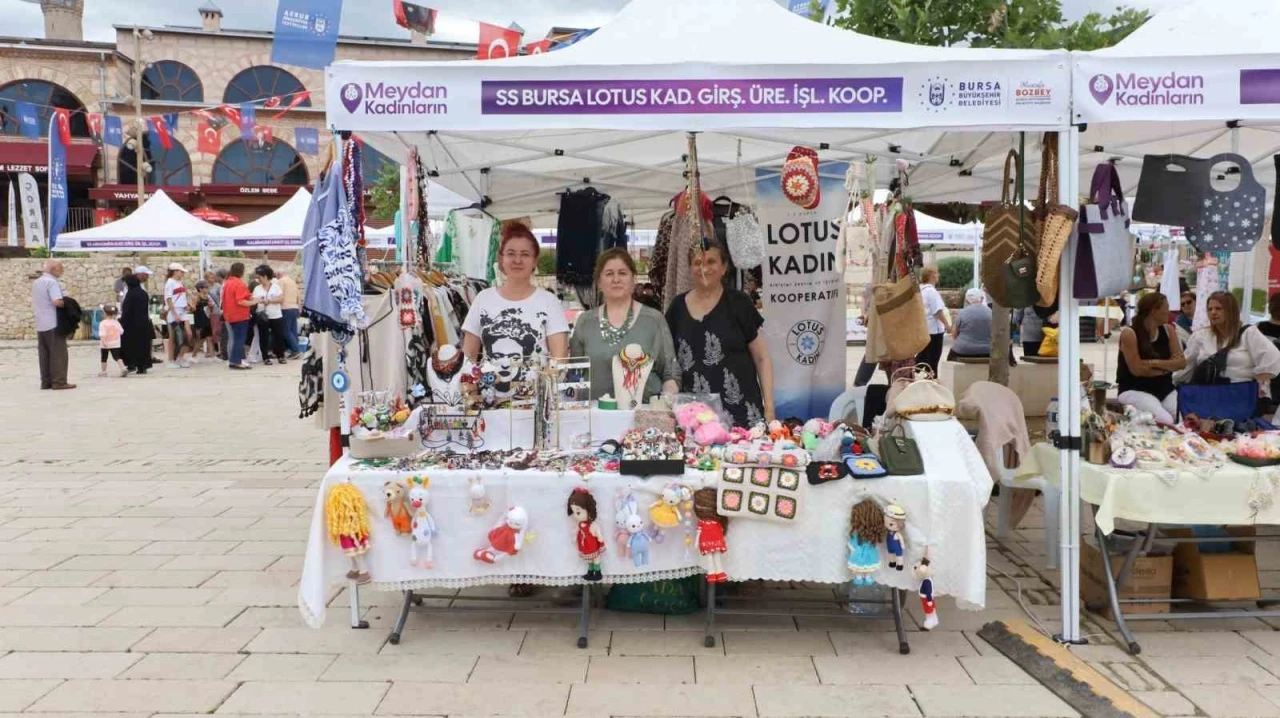Bursa Büyükşehir Belediyesi tarafından ‘Meydan Kadınların’ sloganı ile düzenlenen etkinlikte, kadın kooperatifleri ve kadın derneklerinin el emeği ürünleri ve yöresel lezzetleri sergilendi.