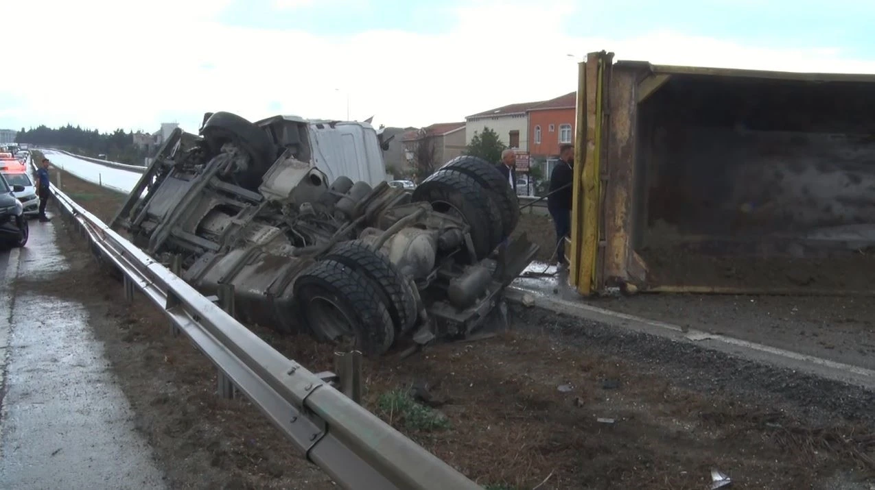 Kaza, saat 11.45 sıralarında E-5 Karayolu Büyükçekmece ilçesi Güzelce mevkii Beylikdüzü istikametinde yaşandı. Edinilen bilgilere göre, 34 DB 3036 plakalı İ.H.T. hakimiyetindeki hafriyat kamyonu yağmur nedeniyle seyir halindeyken kaymaya başladı. Kontrolden çıkan kamyon bariyerlere çarptıktan sonra devrildi. Kazada yaralanan İ.H.T. vatandaşlar tarafından araçtan çıkarıldıktan sonra ambulans ile hastaneye kaldırıldı. Olay sonrası anayolda trafik durdu. Kaza anı güvenlik kamerasında