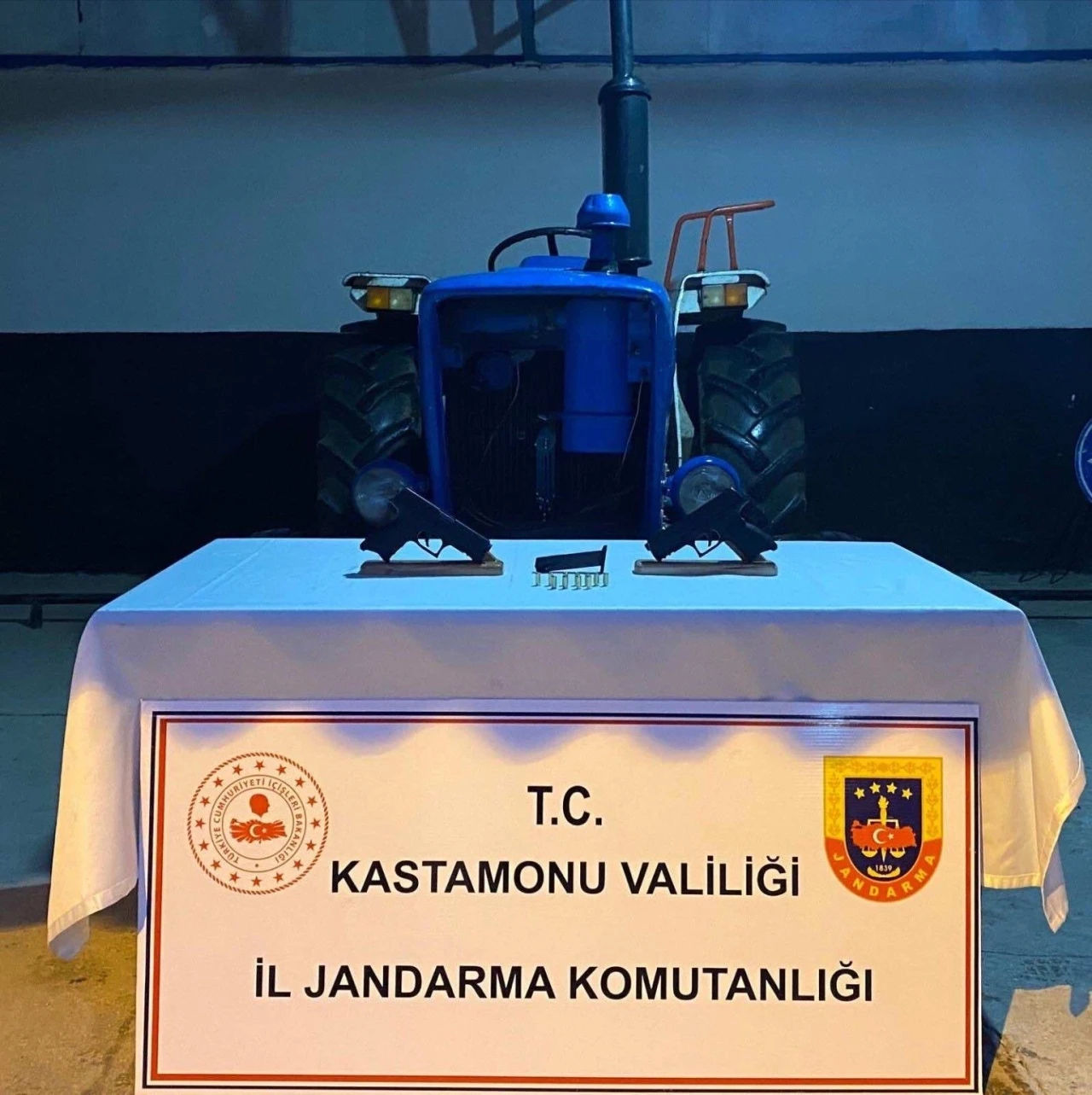 Edinilen bilgiye göre, Taşköprü İlçe Jandarma Komutanlığı ile Jandarma Suç Araştırma Timi (JASAT) tarafından bir vatandaşın traktörünün çalınmasıyla ilgili çalışma başlatıldı. Çalınan traktör, S.G. isimli şahsa ait ahırda bulundu. S.G.’nin yapılan üst aramasında da 2 adet kurusıkı tabanca, 1 adet şarjör ve 11 adet kurusıkı tabanca fişeği ele geçirildi. Traktör sahibine teslim edilirken, şüpheli S.G. jandarma ekiplerince gözaltına alındı.