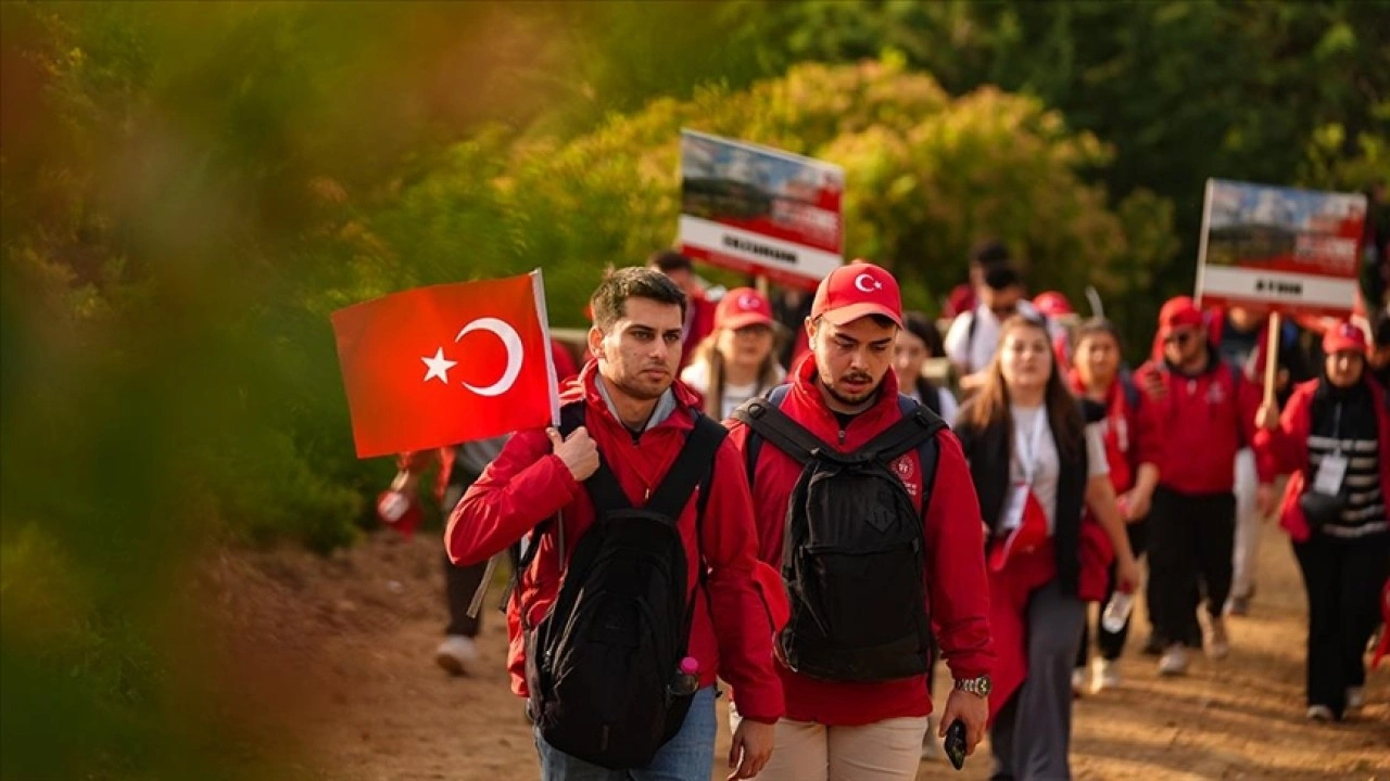 Mehter takımı eşliğinde Türk bayraklarıyla yola çıkan izciler, Conkbayırı'na ulaşıp yürüyüşü tamamlayacak.