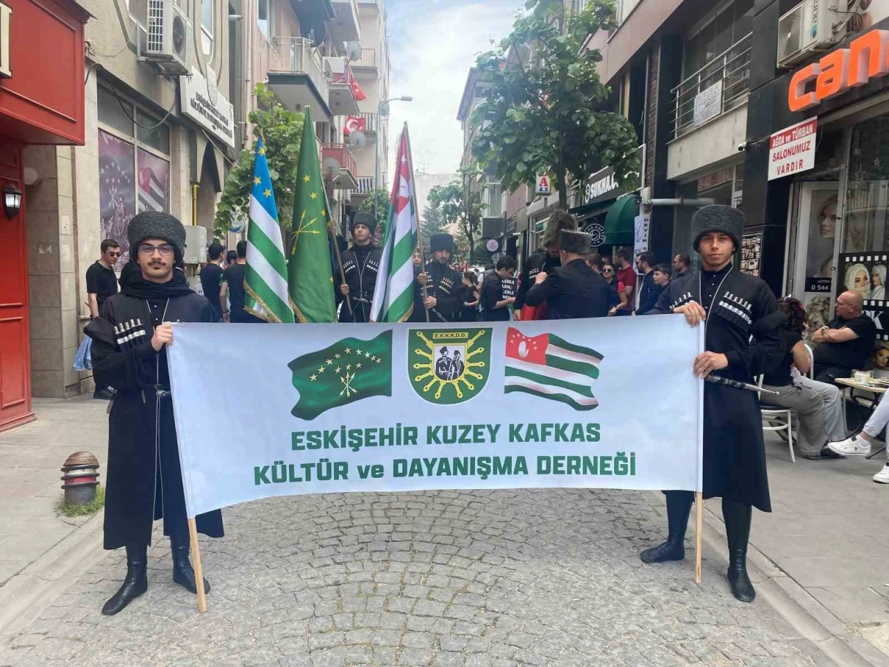 Kuzey Kafkasya Kültür ve Dayanışma Derneği öncülüğünde Eskişehir’de Çerkes Soykırımı yürüyüşü için vatandaşlar saat 13.30’da dernek binasında toplandı. Ardından saat 14.00’te katılımcılar, kortej oluşturarak Odunpazarı Sanat Merkezi’ne doğru yürüyüşe geçti. Yürüyüş boyunca katılımcılar, Çerkes halkının yaşadığı acıları ve kayıpları hatırlatan pankartlarla yürüyüşü gerçekleştirdi. Kuzey Kafkasya Kültür ve Dayanışma Derneği Başkanı Jankat Yelbaşı, "Bundan 161 yıl önce Kafkasya’da bu günkü adıyla Soçi’de direnen son Çerkes Birliği Çarlık Rusyasının yüzyıllar süren vahşi saldırıları sonucu yok edildi ve aralıklarla 300 yıl süren savaş ve etnik temizliğin ardından Kafkasyanın işgali tamamlandı. 161 yıl önce bu günlerde Çarlık Rusyası birlikleri zafer yürüyüşü yaptılar ve takip eden yıllarda da bu günü Zafer Günü olarak kutladılar. Soykırım ve sürgüne uğramış bir halkın diasporada yaşayan fertleri olarak diyoruz ki; Herhangi bir zamanda, Dünyanın herhangi bir yerinde emperyalist, yayılmacı politikalar nedeniyle zulme uğrayan tüm halklara selam olsun. Dün Kafkasyada, bugün Filistin’de soykırım uygulayanların birgün uluslararası hukuk önünde adil bir şekilde hakettikleri cezalara çarptırılmasını diliyor ve intikam değil adalet istiyoruz" diye konuştu.