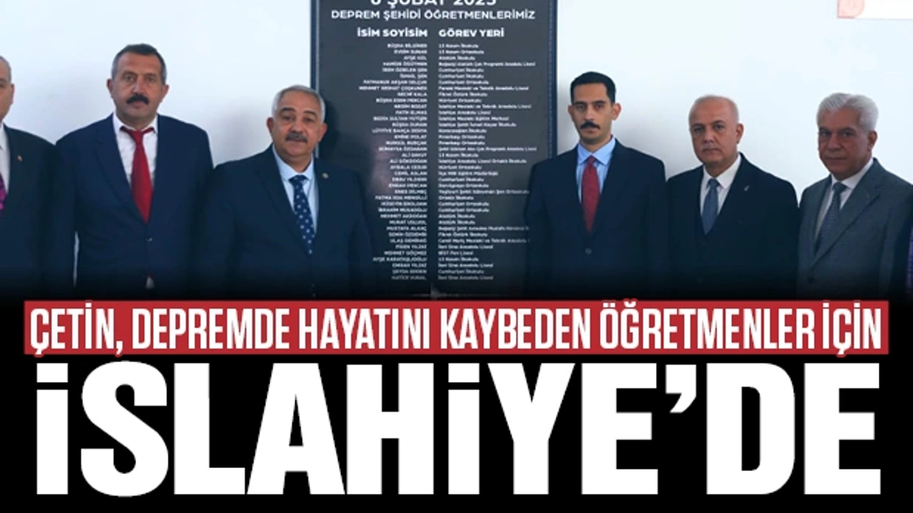 Kahramanmaraş depreminde hayatını kaybeden öğretmenlerin isimlerinin yazılı olduğu tabloyu İslahiye Kaymakamlığı’na asan Çetin, “24 Kasım Öğretmenler Günü’nü deprem yaralarının sarılmaya başladığı İslahiye’de kutladık. Kaymakamlığa 6 Şubat depreminde İslahiye’de şehit olan 40 öğretmenlerimizin isimlerinin bulunduğu tabloyu astık” dedi.