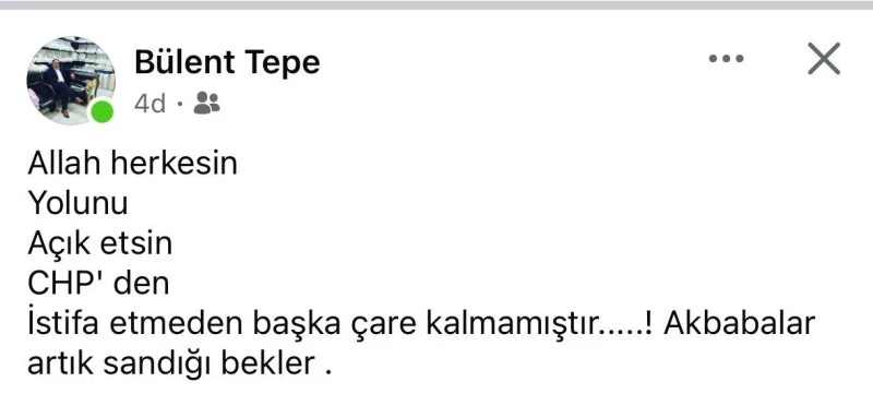 Hayri Sucu, paylaşımında partide baskılar ve oyunlar yaşandığını savunarak şu ifadelere yer verdi:
