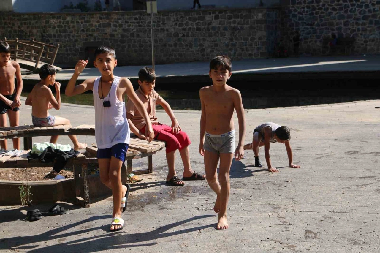 Diyarbakır’da kavurucu sıcaklar yerini serin havaya bıraktı. Serin havaya rağmen süs havuzlarında eğlenen çocukların en çok tercih etti yer, Sur ilçesi İskenderpaşa Mahallesi’ndeki tarihi Anzele havuzu. Anzele parkındaki suya giren çocuklardan İbrahim Karakuş, havaların öğle saatlerinde sıcak olmasından dolayı Anzele havuzuna geldiklerini söyledi.