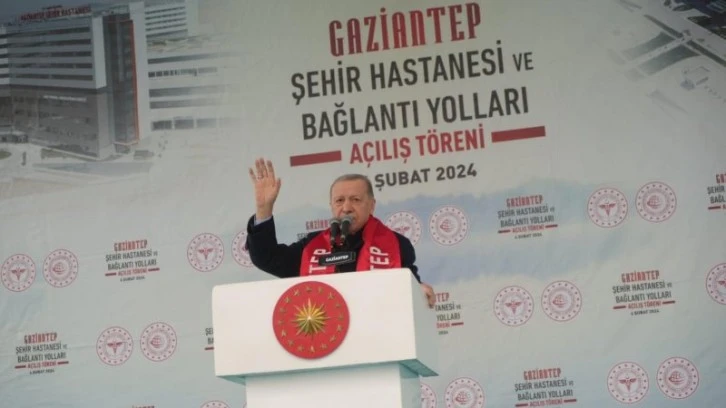 6 Şubat'ta meydana gelen Kahramanmaraş merkezli depremlerden etkilenen 11 ilden biri olan Gaziantep'te Şehir Hastanesi, Şahinbey Millet Camii açılışı ve deprem konutlarının hak sahiplerine teslim edileceği törene katılmak üzere Gaziantep'e gelen Cumhurbaşkanı Erdoğan, Gaziantep Şehir Hastanesi’nin açılışında konuştu. Cumhurbaşkanı Erdoğan, helikopter kazasında şehit olan iki polise rahmet dileyerek, depremin yaraları sarma sözlerini hızla yerine getirdiklerini, deprem şehirlerini tamamen ayağa kaldırana kadar dinlenmeyeceklerini söyledi.