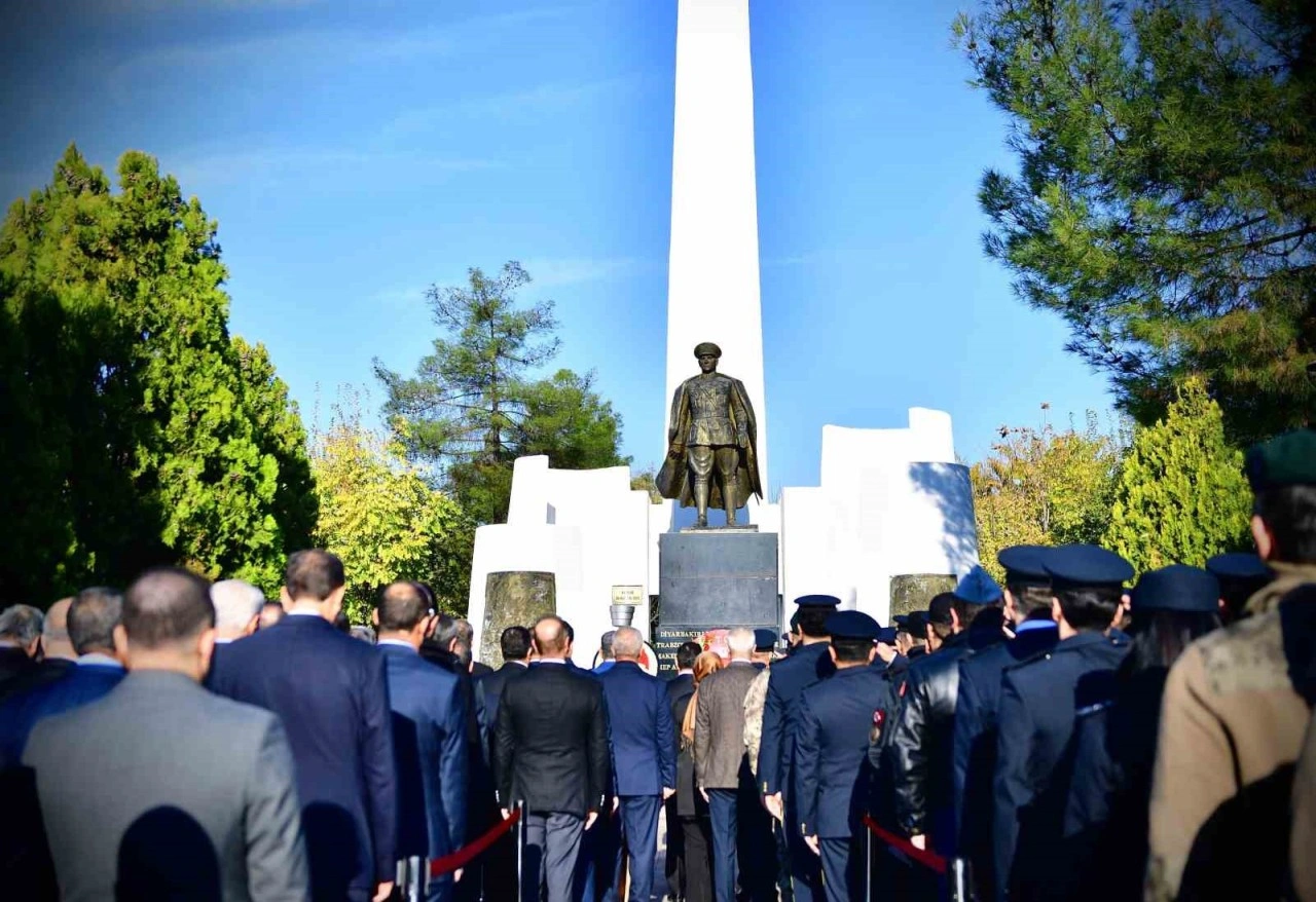 Tören, Anıtpark’ta Vali Murat Zorluoğlu tarafından Atatürk Anıtına Diyarbakır Valiliğinin çelenginin sunulmasıyla başladı. 7. Kolordu ve Garnizon Komutanlığı ve Diyarbakır Büyükşehir Belediyesi tarafından da çelenk sunulan törende saat 09:05’te siren sesleri eşliğinde iki dakikalığına hayat durdu. Çelenk sunma töreni İstiklal Marşı’nın okunmasıyla son buldu.