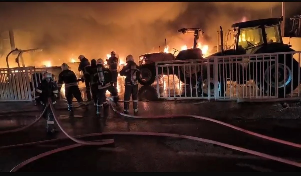 Diyarbakır’ın merkez Kayapınar ilçesindeki Traktörcüler Sitesi’nde çıkan yangında 3 dükkan, 22 traktör ve 1 otomobil yanarak kullanılamaz hale geldi.
