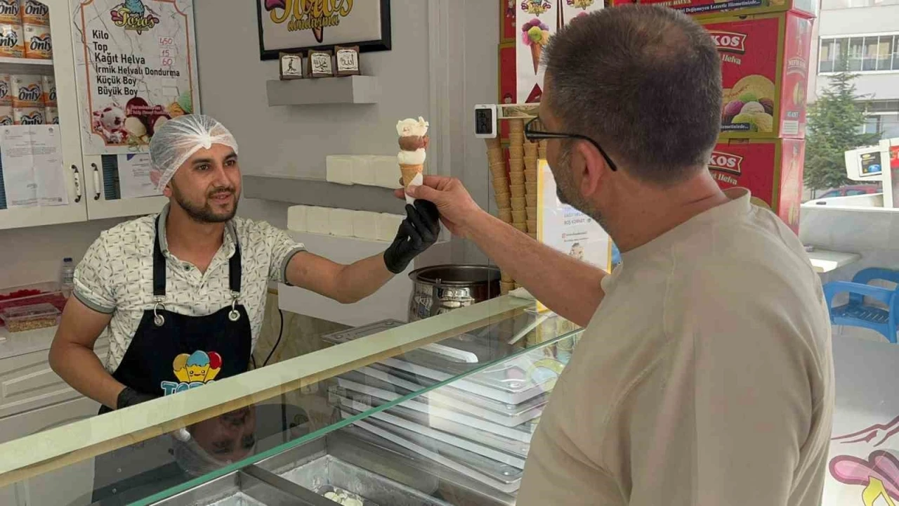 İbrahim Özdemir, babasından devraldığı bu mesleği çocuğuna bırakmak istediğini söyledi. Günde 500 kilogram süt tükettiği iş yerinde mevsiminde aldığı meyvelerle daha çok çeşit yaptığım anlatan Özdemir, "Kaliteli bir dondurma için sütümüz geldi. Sütümüz salep ve şekerle karıştı. Önce soğutmaya alacağız ve sonrasında gerçek doğal meyvelerle dondurma yapımına hazırlayacağız. Burada 50 çeşit dondurma çeşidi yapıyoruz ve meyveli dondurmalarımız yüzde yüz gerçek meyvelerden yapılmakta. Bizim için insan sağlığı çok önemli. Zamanında alarak derin dondurucuda saklıyoruz, ondan sonra çıkarak dondurma yapıyoruz. Son günlerde çıkan haberlerde dondurmalarına katkı maddelerin konulduğu yönünde haberler çıktı. Bu maddeler meyveli dondurmaların renklendirilmesinde kullanılıyor. Doğal renklendiriciler sağlık açısından bir risk oluşturmuyor ancak sentetik renklendiriciler sağlığı olumsuz etkileyebiliyor. Örnek verelim, limonlu dondurma aldınız. Eğer onun rengi sapsarıysa, orada boya kullanıldığı bellidir. Çünkü limonu kattığınız zaman, renk beyazdan sarıya çok hafif döndürebilir ama sapsarı renk oluşmaz. Meyveli dondurma tüketilirken içinde sentetik renklendirici kullanılmadığından emin olunması gerekir" dedi. "Ben 3’üncü kuşağım"