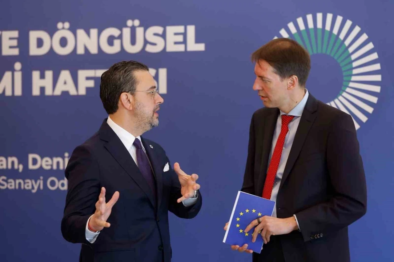 Türkiye’nin sürdürülebilir kalkınma yolculuğunda önemli bir adım olan 4. Türkiye Döngüsel Ekonomi Haftası, Denizli Sanayi Odası’nın (DSO) ev sahipliğinde gerçekleştirildi. Kamu ve özel sektör profesyonellerini, Türkiye ve Avrupa’dan sektörün önde gelen isimleriyle bir araya getiren etkinlikte, Avrupa Birliği Türkiye Delegasyonu Başkan Yardımcısı Jurgis Vilcinskas ile DSO Yönetim Kurulu Başkanı Selim Kasapoğlu yapılacak iş birlikleri hakkında önemli görüşmeler gerçekleştirdi. Etkinliğin açılış konuşmalarını gerçekleştiren Denizli Sanayi Odası Yönetim Kurulu Başkanı Selim Kasapoğlu, Denizli Sanayi Odası olarak, 4. Türkiye Döngüsel Ekonomi Haftası’na ev sahipliği yapmaktan büyük mutluluk duyduklarını dile getirdi. Döngüsel ekonominin, sadece çevresel bir zorunluluk değil, aynı zamanda iş dünyası için rekabet avantajı sağlayan, inovasyonu teşvik eden ve sürdürülebilir büyümeyi mümkün kılan bir model olduğunun altını çizen Başkan Kasapoğlu, "Denizli, Türkiye’nin en önemli ihracatçı kentlerinden biri olarak, bu dönüşüm sürecinde kritik bir noktada bulunuyor. Odamız, üyelerimizin yeşil dönüşüm sürecine katkı sağlamak ve kentimizi bir temiz üretim merkezi haline getirmek için çalışmalarını sürdürmektedir. Sürdürülebilirlik Çalışma Grubu ve oda çalışanlarımızın emek verdiği sürdürülebilirlik yeşil dönüşüm biriminin açılmasıyla odamız daha sürdürülebilir bir kimlik kazandı. Yaklaşık 2 yıldır gerçekleştirdiğimiz farkındalık çalışmaları, uluslararası önemde eğitimler ve projelerle üyelerimizin yeşil dönüşüm sürecine nitelikli katkılar sağlıyoruz. Özellikle Akdeniz Havzasında Sınırötesi İşbirliği vb. Avrupa Birliği destekli programlar aracılığıyla, yaptığımız başarılı işlerin etki alanını genişletmeyi bir hedef olarak önümüze koyuyoruz. Güney Ege Kalkınma Ajansı’nın 12,8 milyon TL’lik hibe desteğiyle yakında faaliyete geçecek olan Güney Ege Yeşil Dönüşüm ve Verimlilik Test Merkezi ile, enerji verimliliği ve temiz üretim alanlarında üyelerimize destek olmak istiyoruz. Yine GEKA ile yürütmüş olduğumuz Sürdürülebilirlik Olgunluk Analizi Projesi kapsamında yapılan çalışmalar neticesinde elde edilen delillere dayanarak, önümüzdeki süreçte ikiz dönüşüm çalışmalarına da ivme kazandıracak. Denizli sanayisinin için önemli bir yatırım olan, üretim gücümüzün sürdürülebilirlik, verimlilik ve dijitalleşme yolculuğuna rehberlik etmesi planlanan Model Fabrika’mızı açılışı için de oldukça heyecanlıyız. Mayıs sonunda hizmete almayı hedefliyoruz" dedi. "Türkiye’nin bu dönüşümünde yanında olmaya ve yatırım yapmaya hazırız"