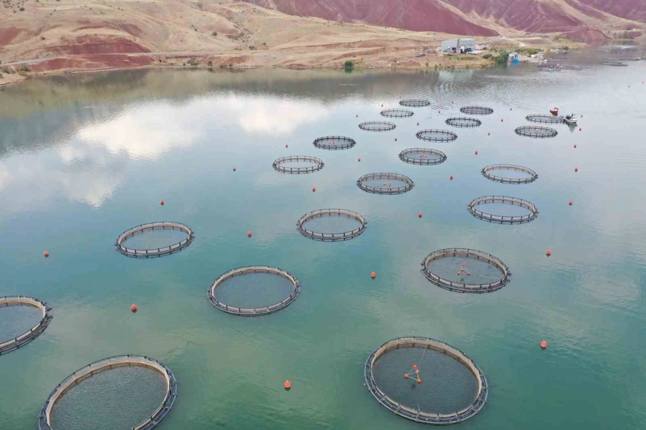 Türkiye, Rusya’nın somon ihtiyacının tamamını karşılayarak dünya balık üretiminde öncü ülkeler arasında yer alırken, denize kıyısı olmayan Sivas ise balık üretimi ile adından sıkça söz ettirmeyi başarıyor. Kentteki baraj göllerinde kurulan balık üretim tesislerinde özellikle alabalık ve Türk somonu üretimi dikkat çekiyor. Suşehri ilçesinde bulunan Çamlıgöze Barajı üzerindeki balık üretim tesisinde yılda yaklaşık 5 bin ton üretim gerçekleştiriliyor. Tesiste yetiştirilen somonlar, başta Rusya ve Japonya olmak üzere Avrupa’nın birçok ülkesine ihraç ediliyor. Balık üretim kapasitesiyle bölge ekonomisine katkı sağlayan tesisi ise Sivas Valisi Yılmaz Şimşek ziyaret etti. Vali Şimşek, tesiste yürütülen üretim faaliyetleri hakkında yetkililerden bilgi aldı. Ziyaret sırasında baraj gölünde tekneye binen Vali Şimşek, kafeslerde yetiştirilen balıklara yem attı.
