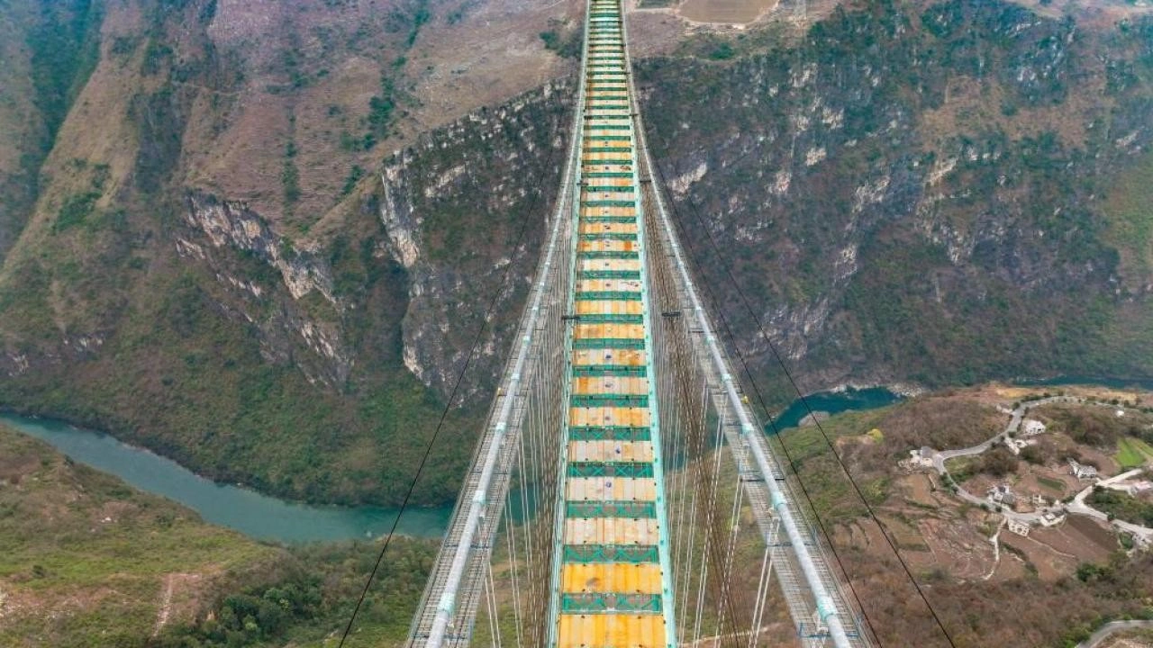 Çin'in güneybatısındaki Guizhou eyaletinde inşa edilen Huajiang Büyük Kanyon Köprüsü'nün ana yapısının tamamlandığı açıklandı. Beipan Nehri üzerinde yer alan ve 625 metre yüksekliğiyle dünyanın en yüksek köprüsü unvanını taşıyacak olan yapı, 1 bin 420 metre ana açıklığa ve 2 bin 890 metre toplam uzunluğa sahip. Ocak 2022’de başlayan projenin bu yıl tamamlanması planlanıyor.