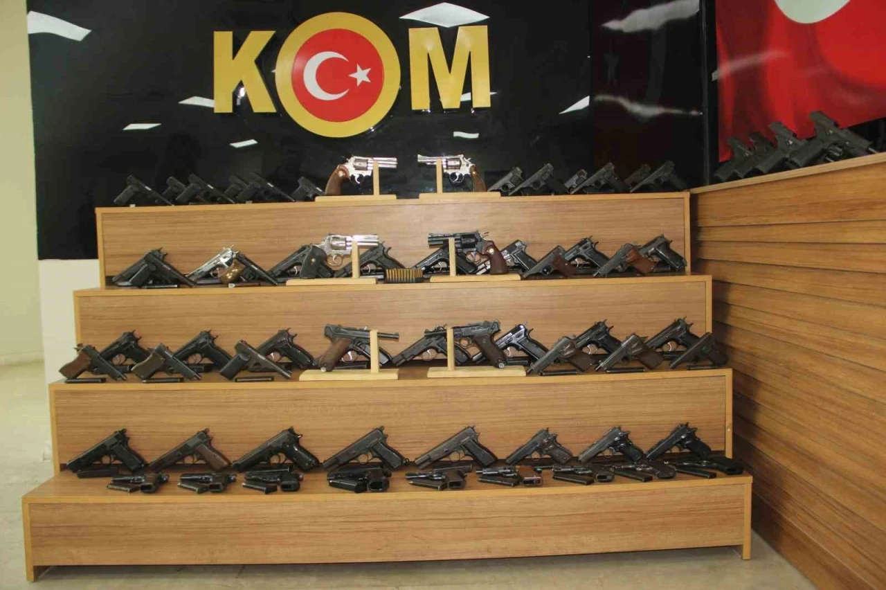 Şanlıurfa’da polis ekipleri tarafından durdurulan otomobilin motor kısmındaki çuvallarda 65 adet ruhsatsız tabanca ile çok sayıda şarjör ve mermi çıktı. Ele geçirilenler arasında İkinci Dünya Savaşı’nda kullanılan silahlar da bulunuyor.