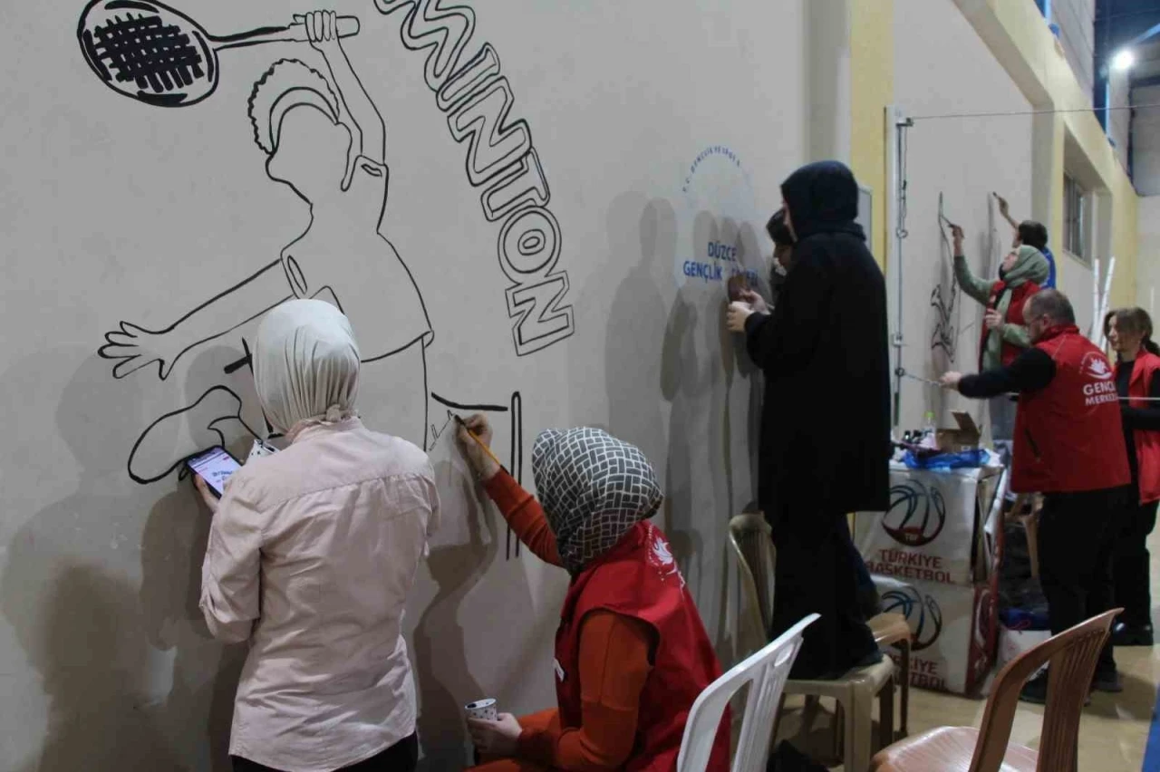 DÜZCE (İHA) – Gençlik ve Spor Bakanlığı Gençlik Kış Kulübü etkinlikleri çerçevesinde duvar çizim ve boyama etkinliği düzenlendi.