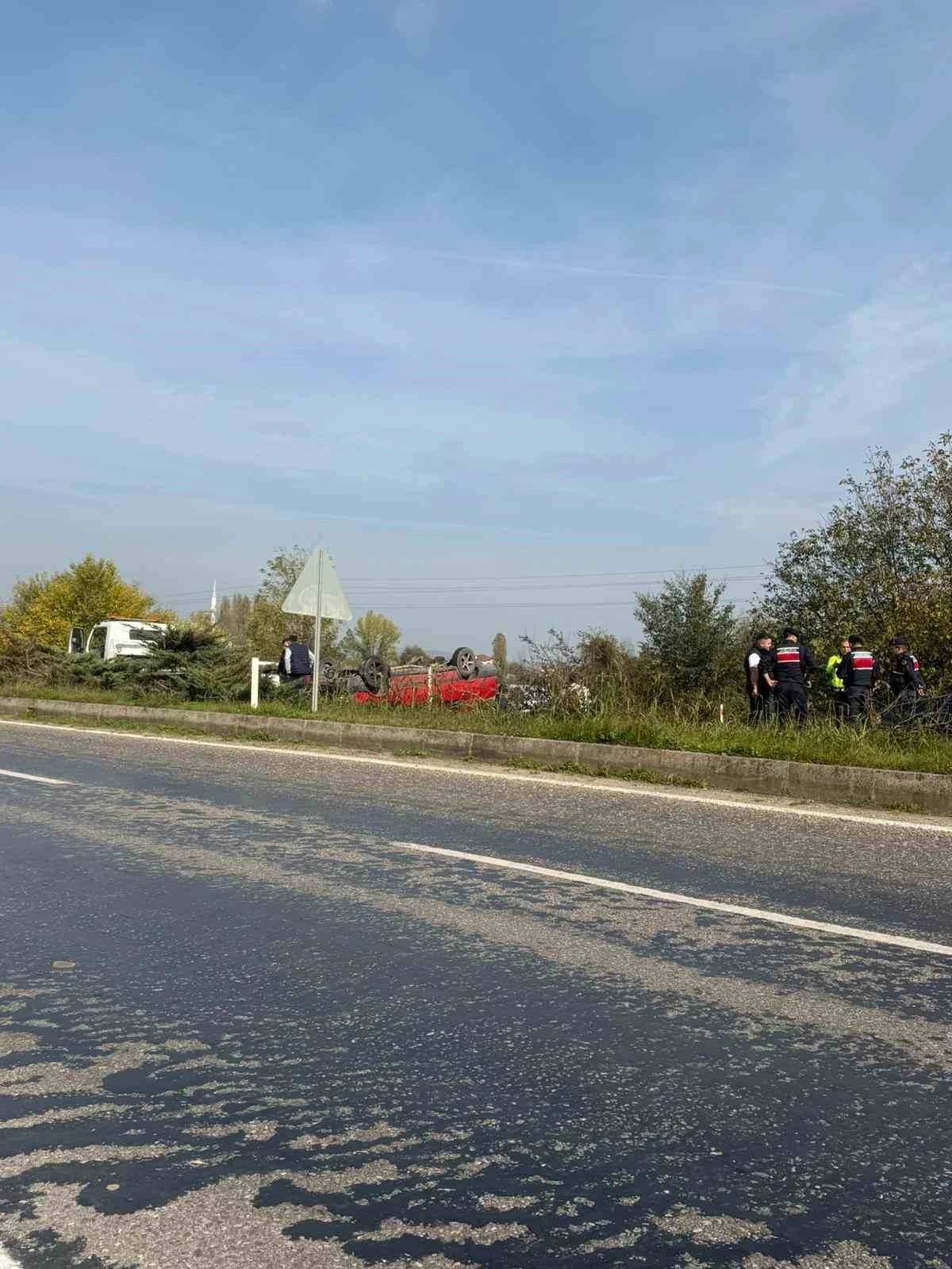 Zonguldak’ın Çaycuma ilçesinde meydana gelen trafik kazasında sürücüsünün direksiyon hakimiyetini kaybeden otomobil, düz yolda kontrolü kaybedince taklalar atarak durabildi. Kazada sürücü hafif şekilde yaralandı.