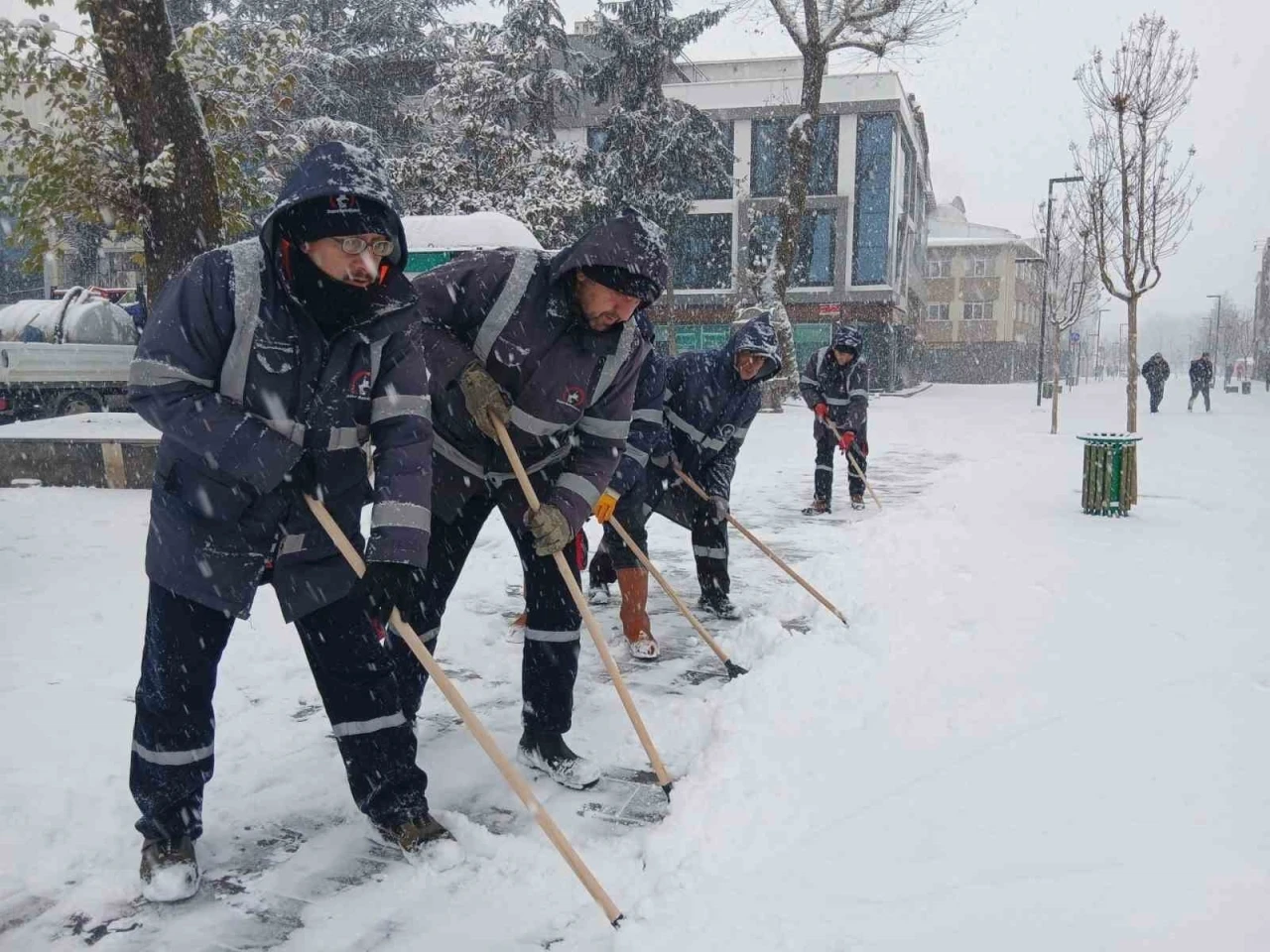 Belediye ekiplerinin, kar yağışının devam etmesi halinde 7/24 esasına göre çalışmalarını sürdüreceği bildirildi.