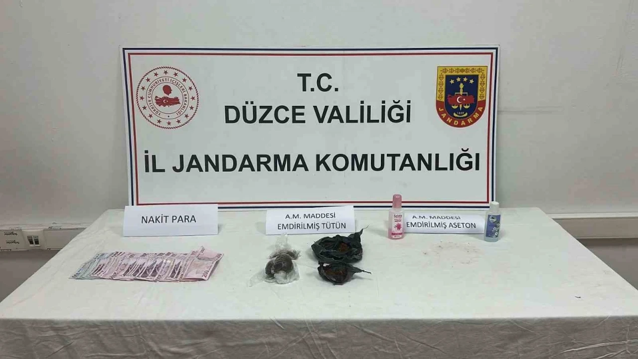 Düzce Cumhuriyet Başsavcılığı koordinesinde Gümüşova ilçesi, Çaybükü Köyünde Jandarma KOM Şube ekipleri tarafından yapılan takipli faaliyet neticesinde İ.B. (24) isimli şahsın yapılan kaba üst aramasında 2 gram A.M. maddesi emdirilmiş tütün ele geçirildi. Soruşturmayı derinleştiren ekipler Çaybükü köyünde ikamet eden T.E. (33) ve F.A.(41) isimli şahısların bulunduğu ikamette arama yaptı. Yapılan aramada ayrı ayrı poşetler içerisinde toplam 54 gram uyuşturucu maddesi emdirilmiş tütün, 2 şişe halinde 60 ve 62 gram olmak üzere uyuşturucu maddesi ve 4 bin 700 TL nakit para ele geçirildi.