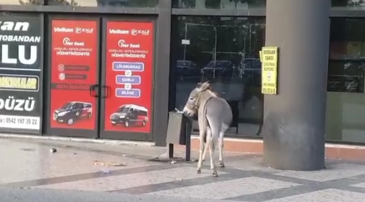 Edirne Otogarı’nda başıboş dolaşan eşeğin dubayı ağzına alıp kaçması ve çevreye zarar vermesi ilginç görüntüler oluşturdu.