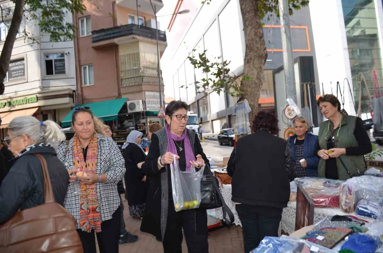 Kent Konseyi Kadın Meclisi Sevcan Erkan Saygılı, ’Üretici Kadınlar Pazarı’nda kendi yaptıkları ev eleği göz nuru ürünleri sattıklarını anlatarak, "Yaptığımız satışlarla üniversite öğrencilerimize burslar veriyoruz. Ayrıca durumu olmayan ailelerimize yardım ediyoruz. Arkadaşlarımızla birlikte imece usulü çalışarak, paylaşımlar yapıyoruz. Satışlarımız güzel oluyor. Bir de öğrencilerimize destek verdiğimiz için bunu duyan halkımız bize daha da fazla destek veriyor. Bu da bizim gurur kaynağımız oluyor. Arkadaşlarımızla birlikte yapıyoruz. Duyan arkadaşlarımız geliyor; onlar da evlerinde yaptıklarını bizlerle paylaşıyor. Bu şekilde paylaşımlarda bulunuyoruz" dedi. "Topladıklarımız küçülen kıyafetleri evlerimizde yıkayarak, tertemiz bir şekilde satıyoruz"