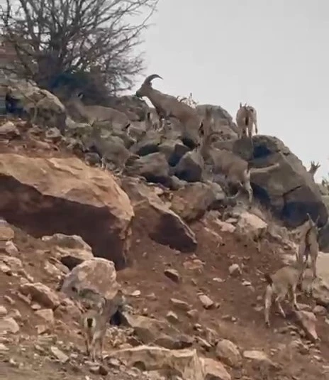 Elazığ’ın Palu ilçesinde koruma altındaki dağ keçileri sürü halinde görüntülendi.