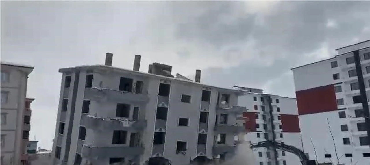 Kahramanmaraş merkezli depremlerde Elazığ’da ağır hasar gören binaların yıkımları sürüyor. Bu çerçevede binanın yıkım anı kameralara yansıdı.