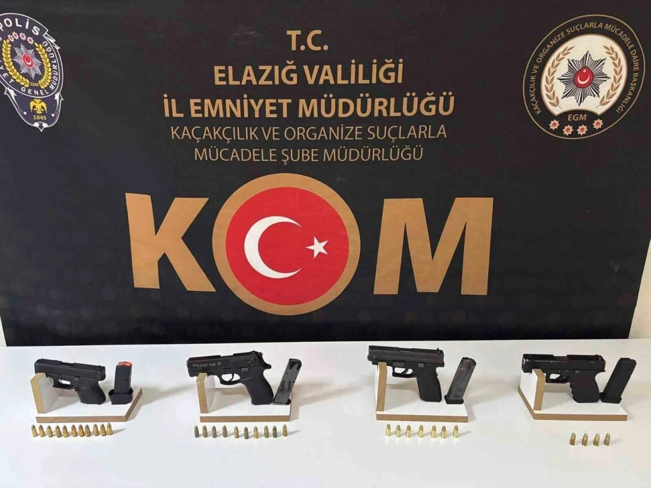 Elazığ’da 2 gün önce İcadiye Mahallesi’nde meydana gelen olaylar üzerine polis ekipleri tarafından yapılan çalışmada 4 adet ruhsatsız tabanca ele geçirilirken 2 şüpheli tutuklandı. Edinilen bilgiye göre, Elazığ Cumhuriyet Başsavcılığı koordinesinde İl Emniyet Müdürlüğü Kaçakçılık ve Organize Suçlarla Mücadele, Çocuk ve Asayiş Şube Müdürlükleri tarafından genel güvenlik ve genel asayişin sağlanması, suça konu unsurların tespiti ve şüpheli şahısların yakalanmasına yönelik çalışmalar sürüyor. Bu çerçevede 2 gün önce İcadiye Mahallesi Sarısaltuk Caddesi üzerinde faaliyet gösteren 2 ayrı restaurantta meydana gelen ‘Yağma, Mala Zarar Verme, 6136 Sayılı Kanuna Muhalefet ve Genel Güvenliğin Kasten Tehlikeye Sokulması’ olayına karıştığı tespit edilen 6 şüpheli olayda kullanıldığı değerlendirilen 4 adet ruhsatsız tabanca ve tabancalara ait 32 adet fişek ile birlikte yakalandı.