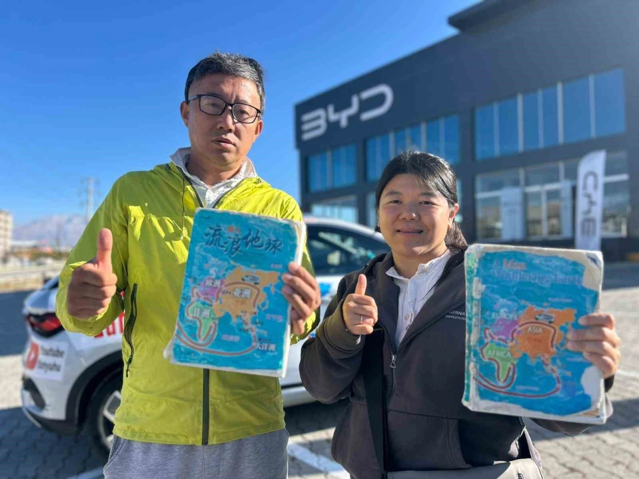 Çinli gezgin çift, elektrikli araçla gerçekleştirdikleri dünya turu kapsamında Van’a ulaştı.