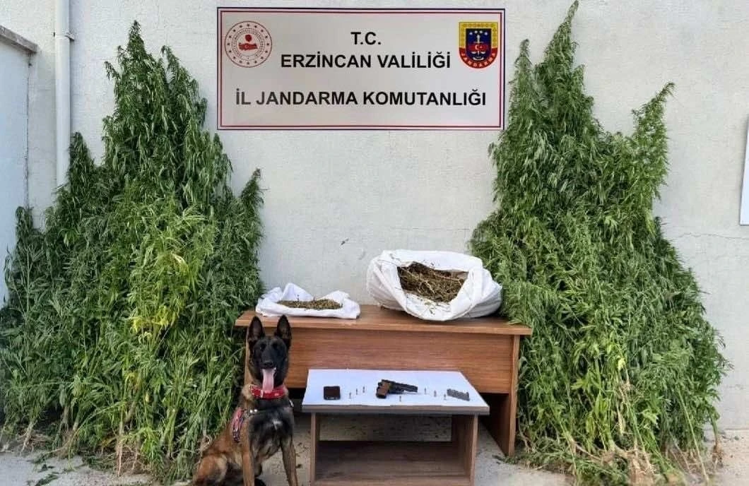 Erzincan İl Jandarma Komutanlığınca, uyuşturucu suçlarının önlenmesi kapsamında Refahiye ilçesi mülki sınırları içerisinde 1 şahsa ait arazi ve ev ve eklentilerinde yapılan aramada; 204 kök kenevir bitkisi, 2.714 gram kubar esrar, 1 adet 9 mm tabanca ve 7 adet tabanca mermisi ele geçirildi. Şüpheli şahıs gözaltına alınarak adli işlem başlatıldı.