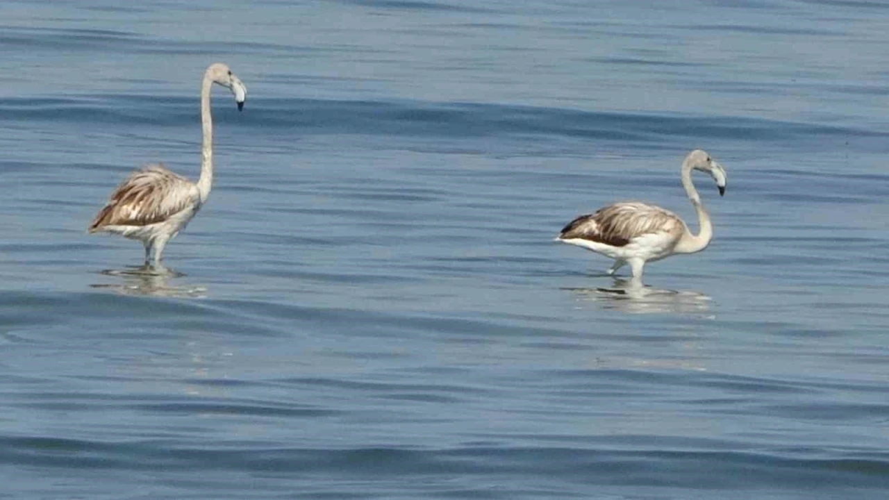 Van Gölü havzasında bu yıl sayılarında artış gözlenen flamingolar, ilk kez Tuşba ilçesine bağlı İskele Mahallesi sahilinde konakladı.