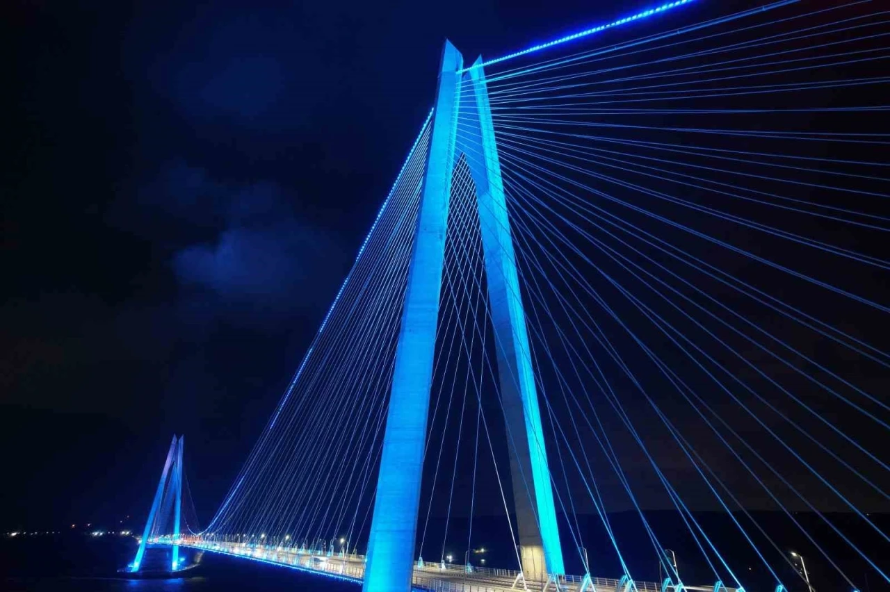 Dünya Denizcilik Günü dolayısıyla İstanbul Boğazı’nın iki dev geçişi Fatih Sultan Mehmet (FSM) ve Yavuz Sultan Selim köprüleri mavi ışıklarla aydınlatıldı. Boğaz’ın iki yakasını buluşturan köprülerin büyüleyici manzarası dron ile görüntülendi.