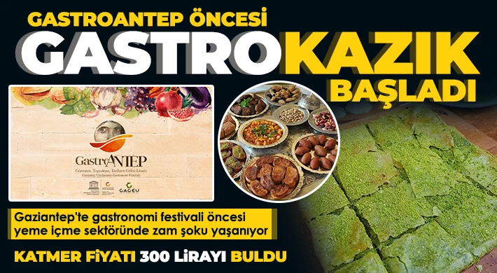 Gaziantep'te önümüzdeki hafta sonu yapılacak olan GastroAntep Gastronomi ve Kültür Yolu Festivali öncesi kentteki yeme içme sektöründe yaşanan zamlar dikkat çekti. Normal 100-150 lira bandında satılan katmerin fiyatı 250-300 lirayı buldu