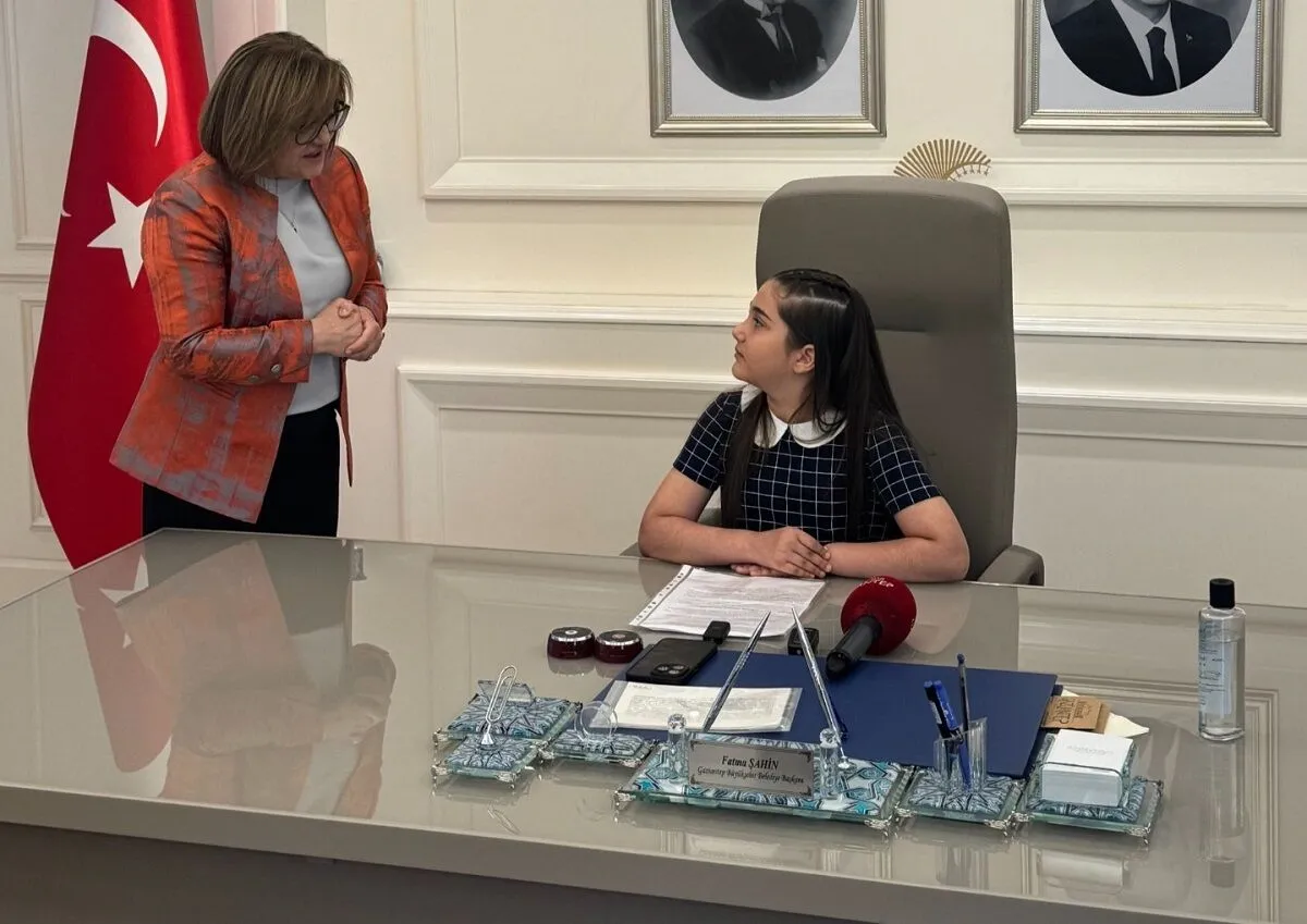 Gaziantep’te 23 Nisan Ulusal Egemenlik ve Çocuk Bayramı büyük bir coşkuyla kutlanıyor. Büyükşehir Belediye Başkanı Fatma Şahin, 23 Nisan dolayısıyla makamını 9 yaşındaki ilkokul 3’üncü sınıf öğrencisi Azra Ateş’e bıraktı.
