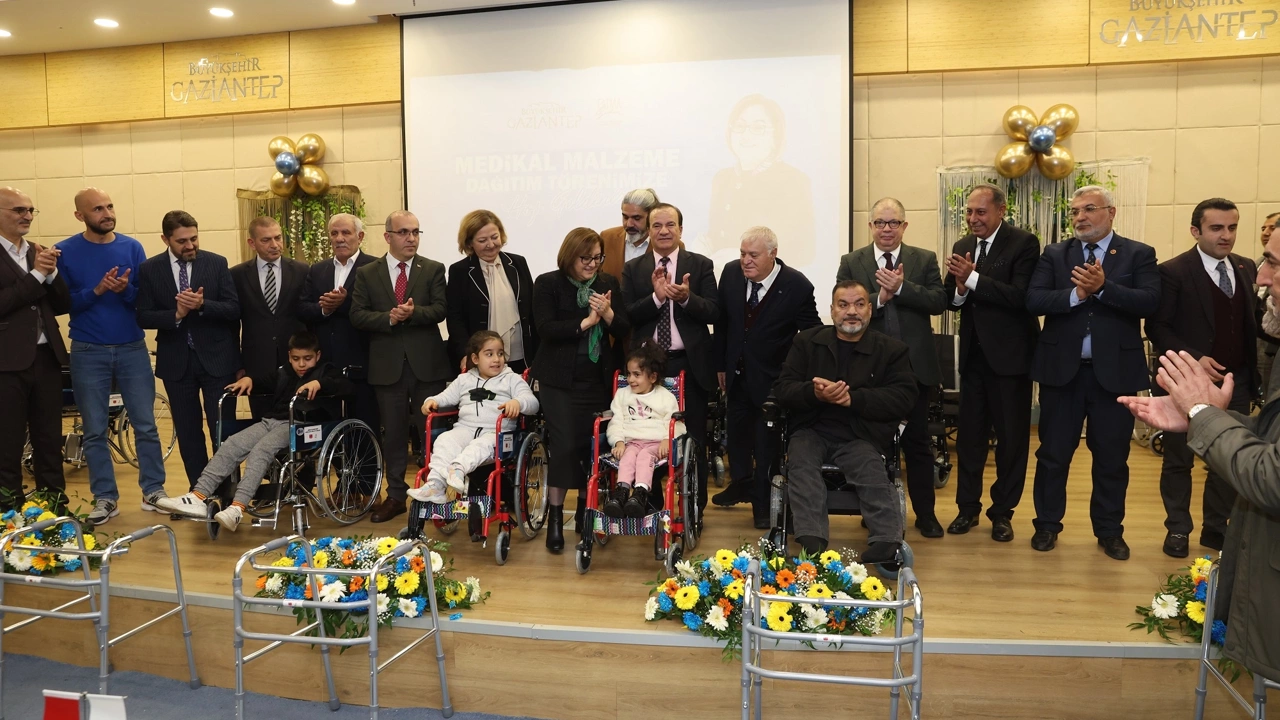 Gaziantep Büyükşehir Belediyesi, Türkiye Sakatlar Konfederasyonu ile iş birliği yaparak engelli vatandaşlara 102 adet medikal malzeme dağıttı. Engelli vatandaşların sosyal hayata daha aktif katılmalarını amaçlayan bu proje kapsamında, Engelsiz Yaşam Merkezi'nde düzenlenen törende 16 adet akülü tekerlekli sandalye, 42 adet yetişkin tekerlekli sandalye, 14 adet çocuk tekerlekli sandalye, 30 adet konuşan saat ve beyaz baston verildi.