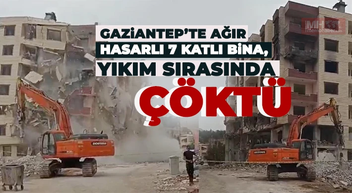 Gaziantep’te ağır hasarlı 7 katlı bina, yıkım sırasında çöktü